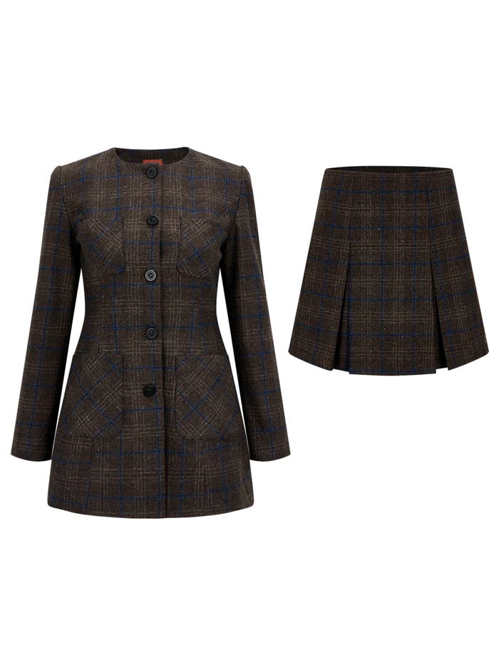 Design: Plaid, Round neck and button pockets, long sleeves and padded shoulders, front patch pocket Lining 100% polyester