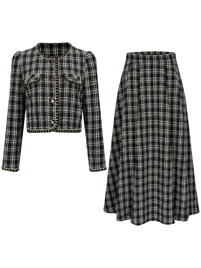 Shirt: Round neck, long sleeve, Buttoe pockets, Front flap pockets, Non-stretch 100% polyester tweed lining