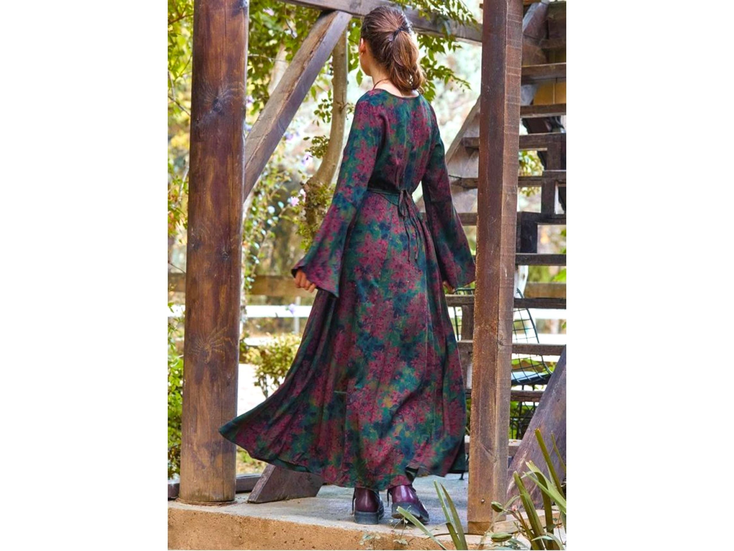 Add a touch of timeless elegance to your winter wardrobe with this Off-Shoulder Green Maxi Dress with Waist Tie and Flared Sleeves.
