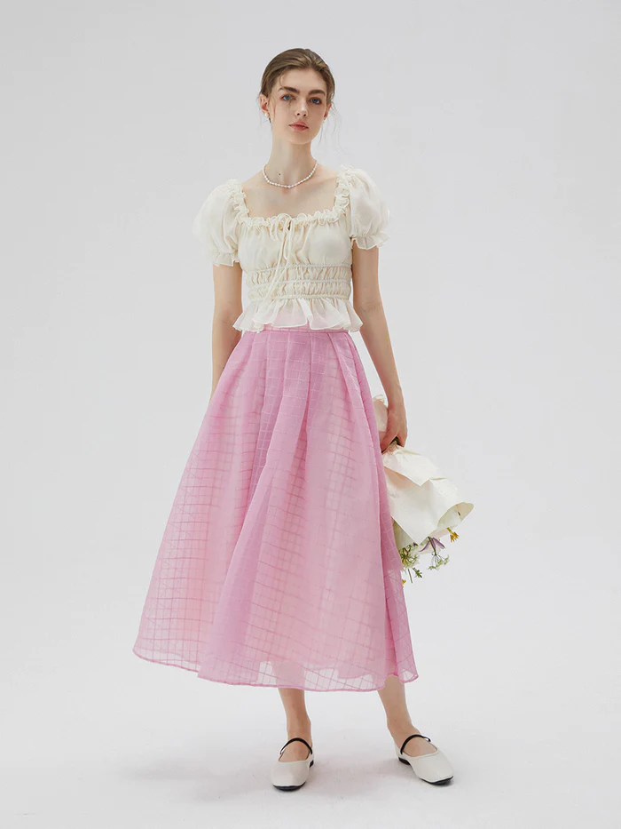The style is really elegant and feminine with its pleated waist and windowpane design